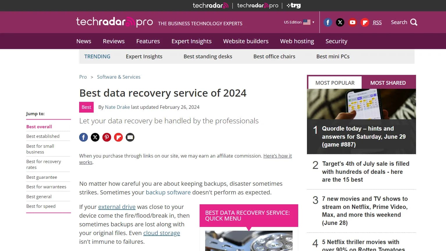 Techradar highlights SalvageData for its impressive recovery rates in 2024.