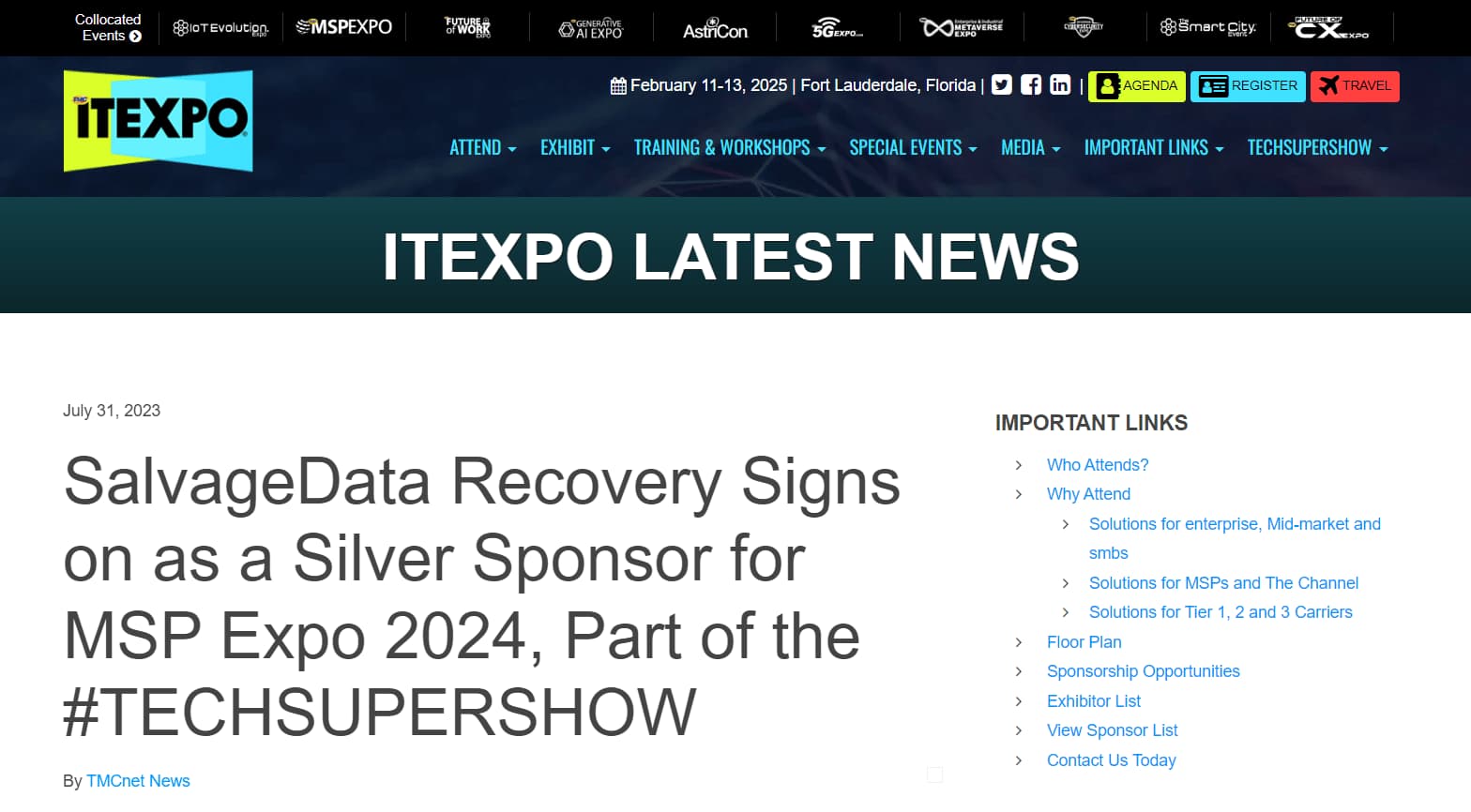 SalvageData signs on as a Silver Sponsor for MSP Expo 2024, part of the TECHSUPERSHOW.